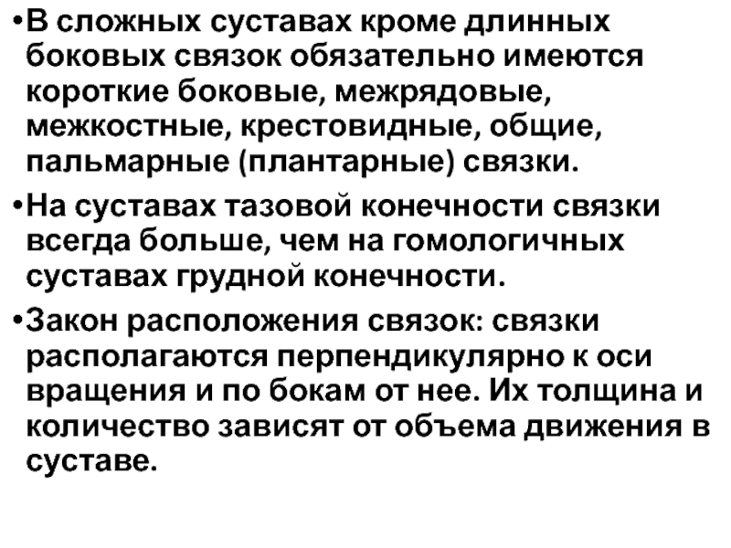 Слайд 55В сложных суставах кроме длинных боковых связок обязательно имеются короткие