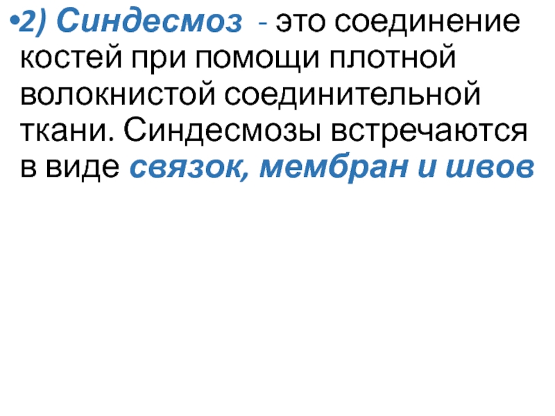 Слайд 52) Синдесмоз - это соединение костей при помощи плотной волокнистой