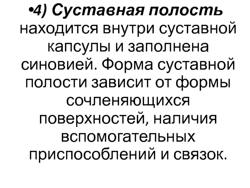 Слайд 324) Суставная полость находится внутри суставной капсулы и заполнена синовией.