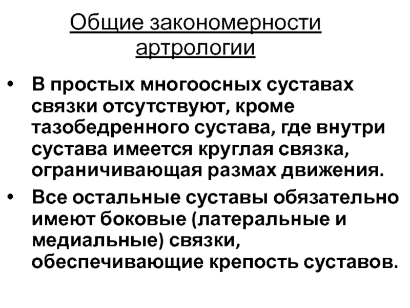 В простых многоосных суставах связки отсутствуют, кроме тазобедренного