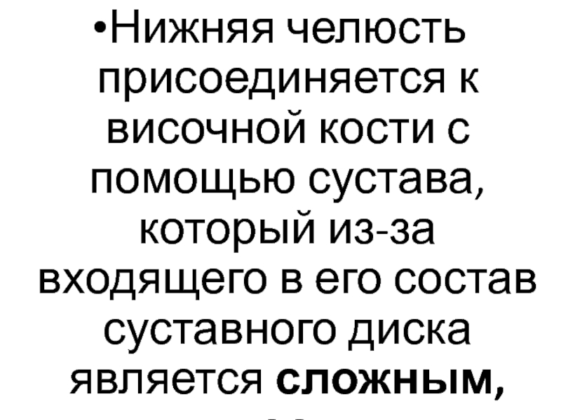Слайд 60Нижняя челюсть присоединяется к височной кости с помощью сустава, который