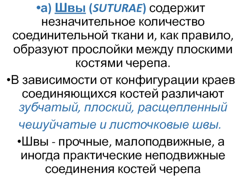 Слайд 6а) Швы (SUTURAE) содержит незначительное количество соединительной ткани и, как