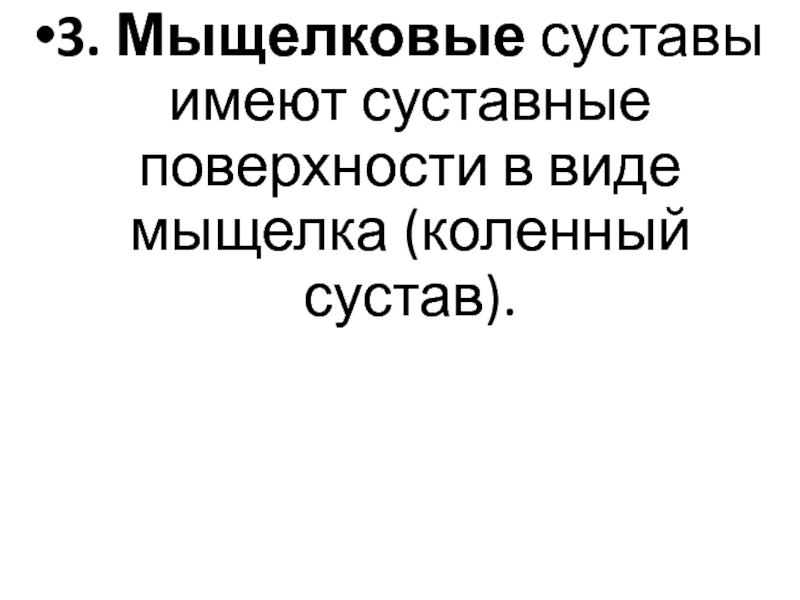 Слайд 453. Мыщелковые суставы имеют суставные поверхности в виде мыщелка (коленный