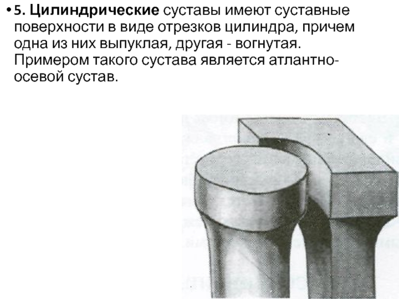 Слайд 475. Цилиндрические суставы имеют суставные поверхности в виде отрезков цилиндра,