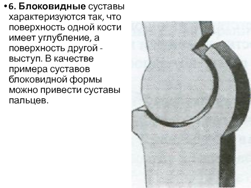 Слайд 486. Блоковидные суставы характеризуются так, что поверхность одной кости имеет