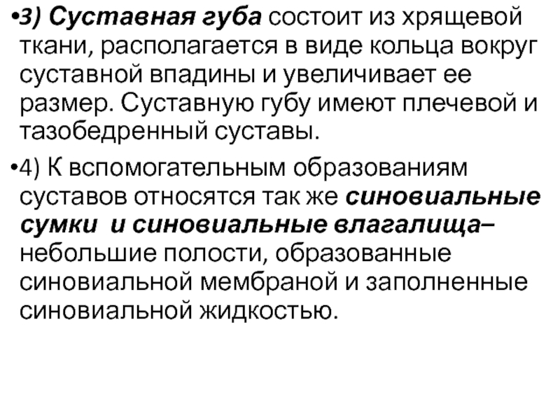 Слайд 363) Суставная губа состоит из хрящевой ткани, располагается в виде