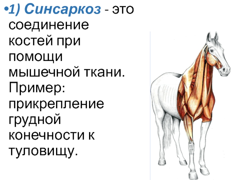 Слайд 41) Синсаркоз - это соединение костей при помощи мышечной ткани.