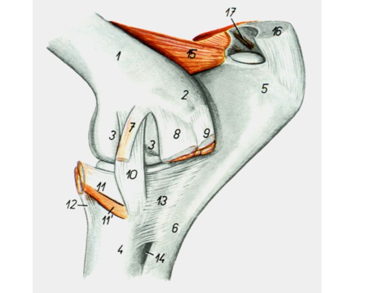 2) Суставные связки. Oни построены из плотной соединительной ткани и могут располагаться как снаружи, так и внутри суставной полости. Суставные связки укрепляют сустав и ограничивают размах движения.