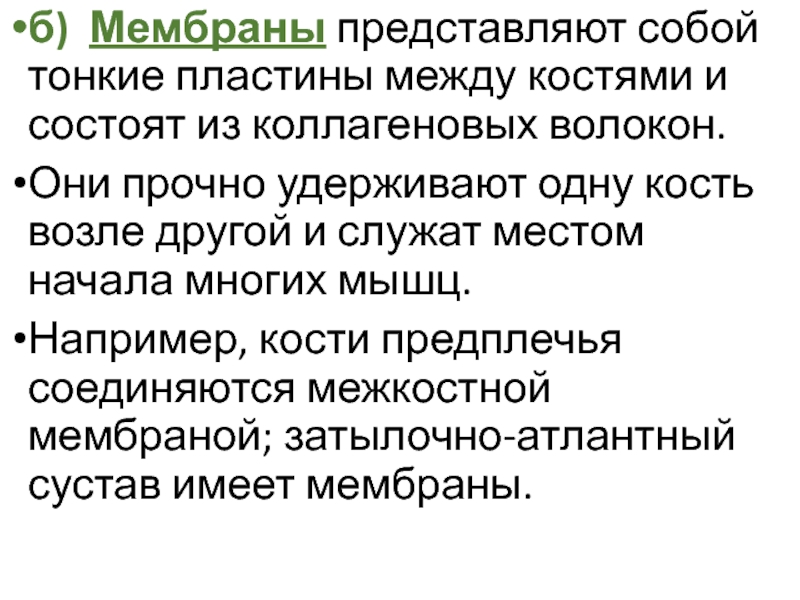 Слайд 8б) Мембраны представляют собой тонкие пластины между костями и состоят