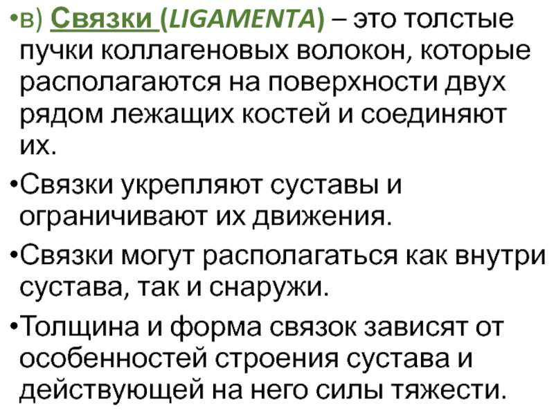 Слайд 10в) Связки (LIGAMENTA) – это толстые пучки коллагеновых волокон, которые
