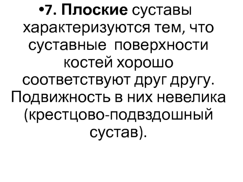 Слайд 497. Плоские суставы характеризуются тем, что суставные поверхности костей хорошо