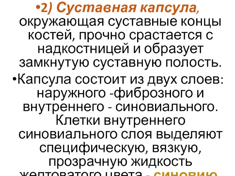 Слайд 272) Суставная капсула, окружающая суставные концы костей, прочно срастается с