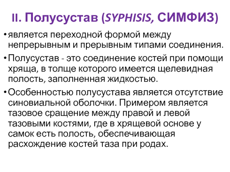 Слайд 19II. Полусустав (SYPHISIS, СИМФИЗ)