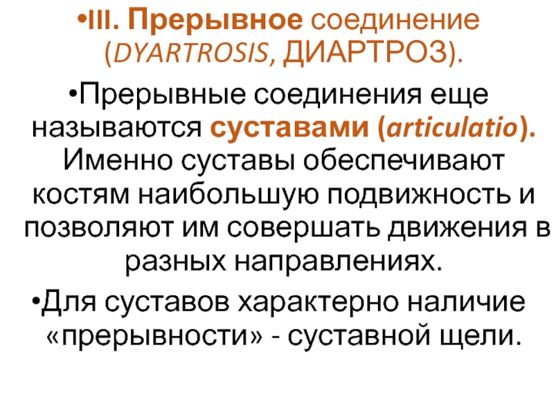 Слайд 21III. Прерывное соединение (DYARTROSIS, ДИАРТРОЗ).