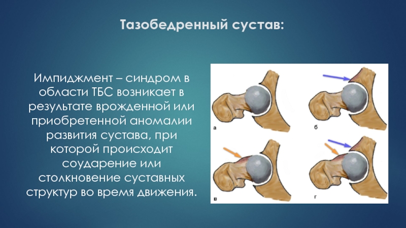 врожденной или приобретенной аномалии развития сустава, при которой происходит соударение