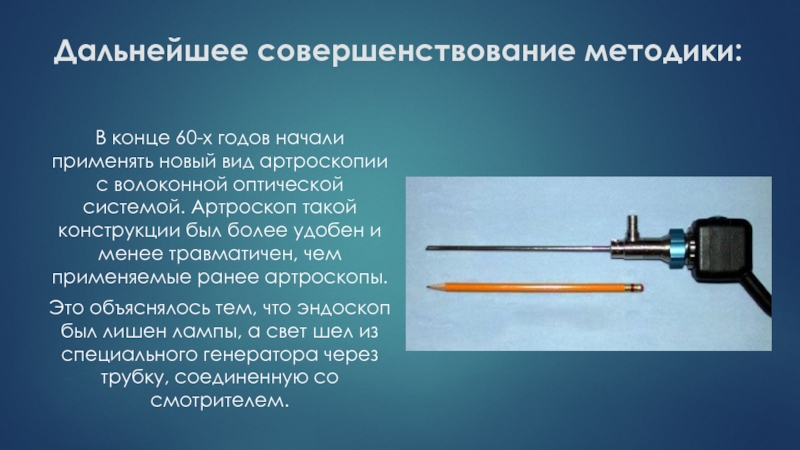 артроскопии с волоконной оптической системой. Артроскоп такой конструкции был более