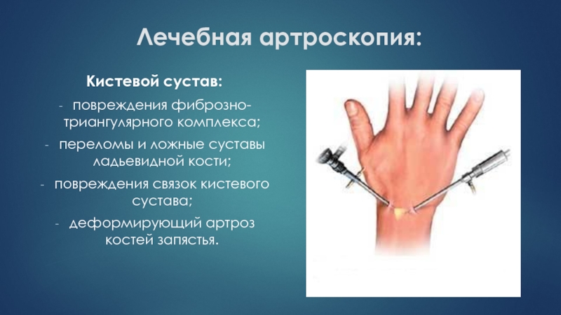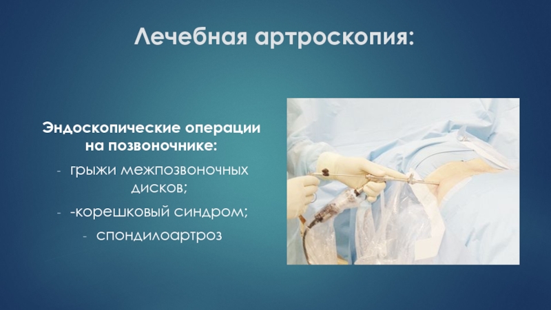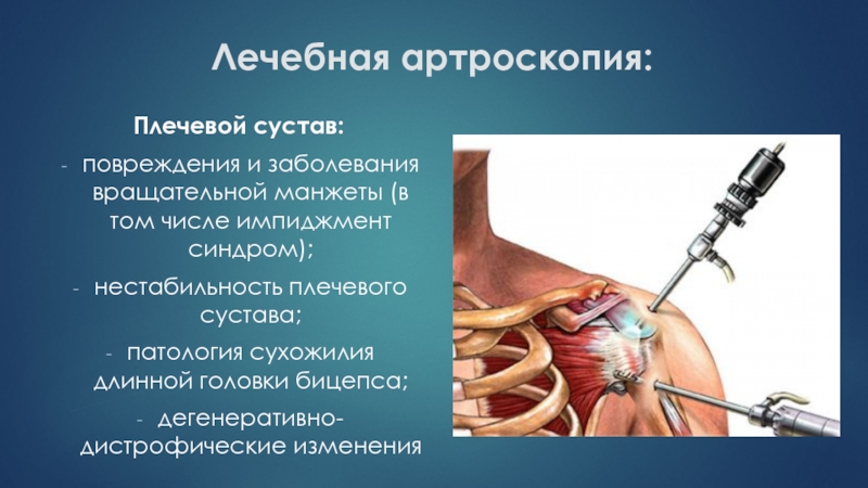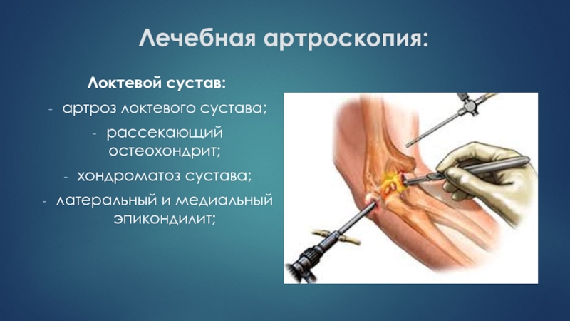Слайд 48Лечебная артроскопия: