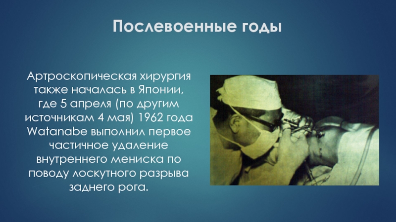 Артроскопическая хирургия также началась в Японии, где 5 апреля