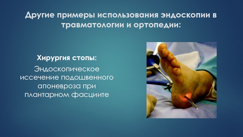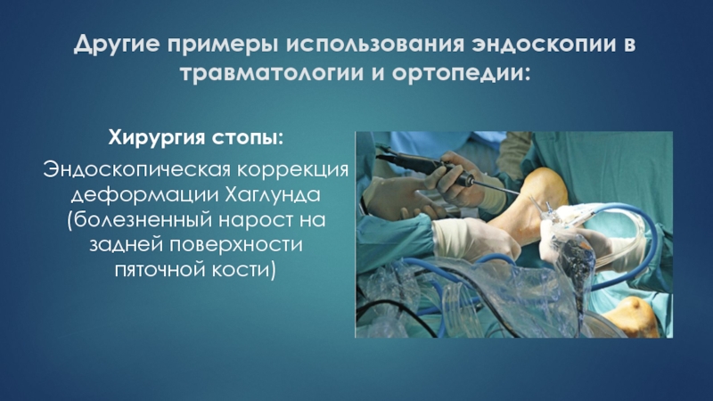 Слайд 55Другие примеры использования эндоскопии в травматологии и ортопедии: