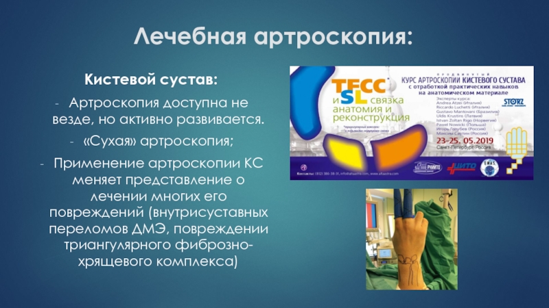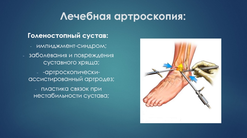 Слайд 49Лечебная артроскопия: