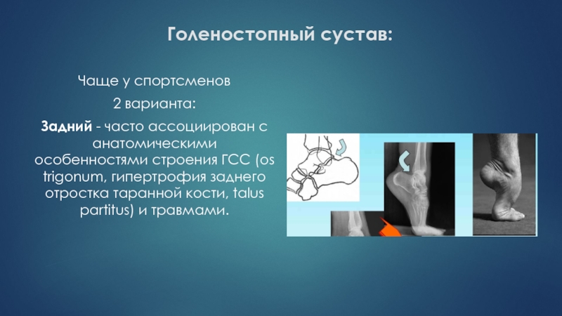 особенностями строения ГСС (os trigonum, гипертрофия заднего отростка таранной кости,