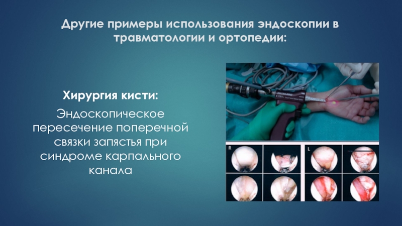 Слайд 56Другие примеры использования эндоскопии в травматологии и ортопедии: