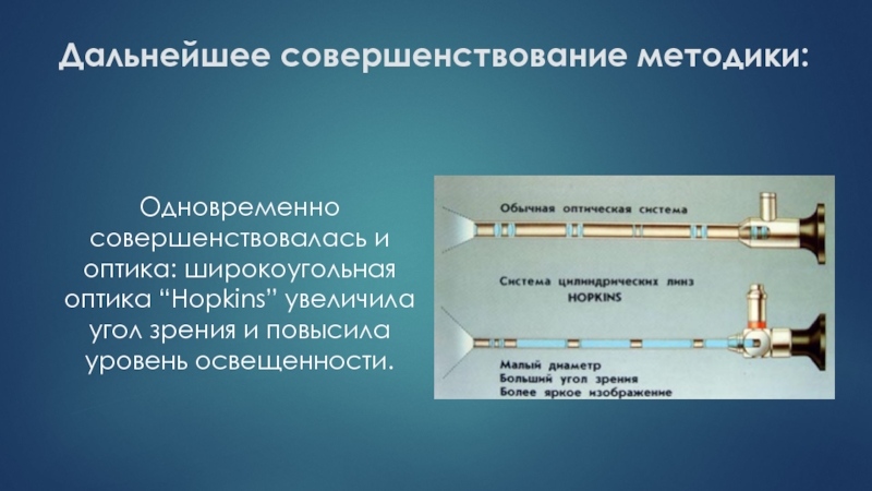 Одновременно совершенствовалась и оптика: широкоугольная оптика “Hopkins” увеличила
