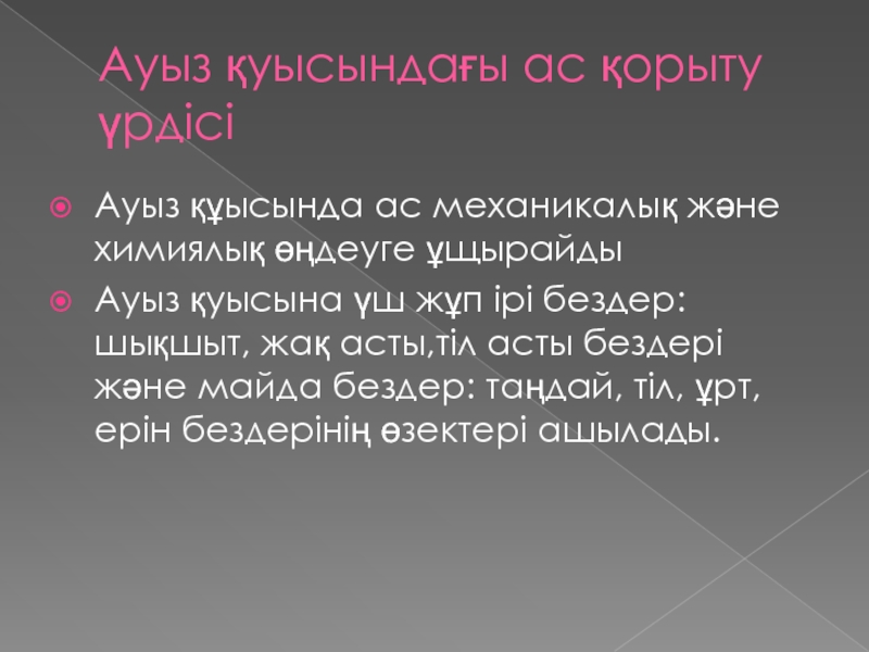 Слайд 10Ауыз қуысындағы ас қорыту үрдісі