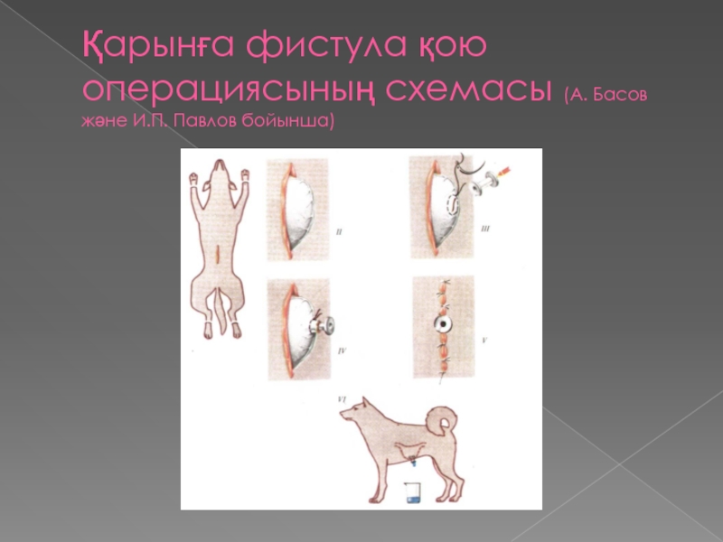 Слайд 8Қарынға фистула қою операциясының схемасы (А. Басов және И.П. Павлов