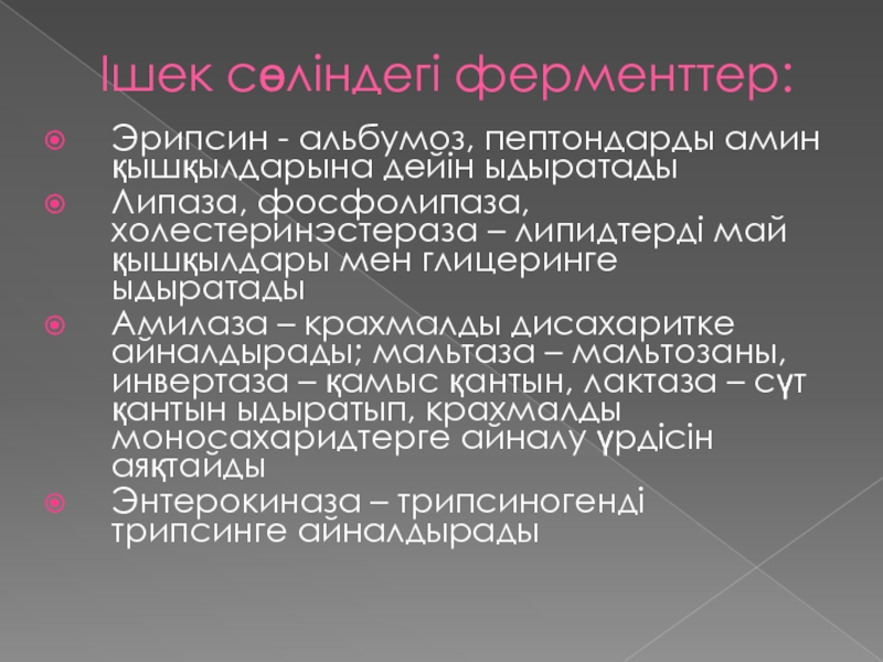 Слайд 16Ішек сөліндегі ферменттер: