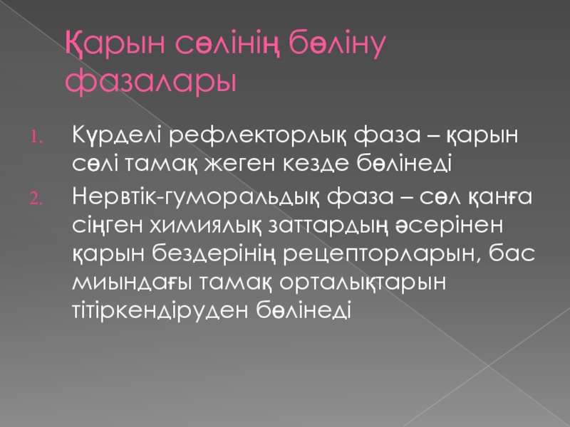 Слайд 14Қарын сөлінің бөліну фазалары