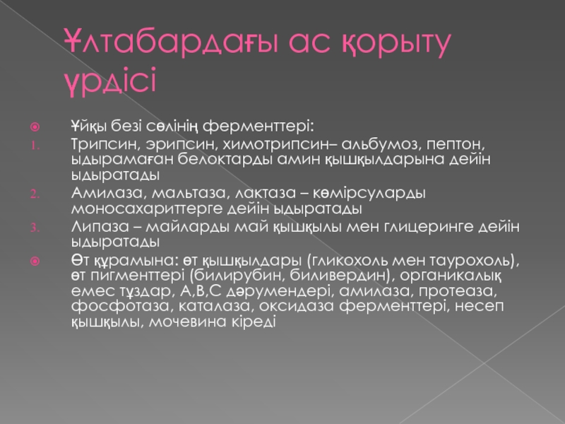 Слайд 15Ұлтабардағы ас қорыту үрдісі