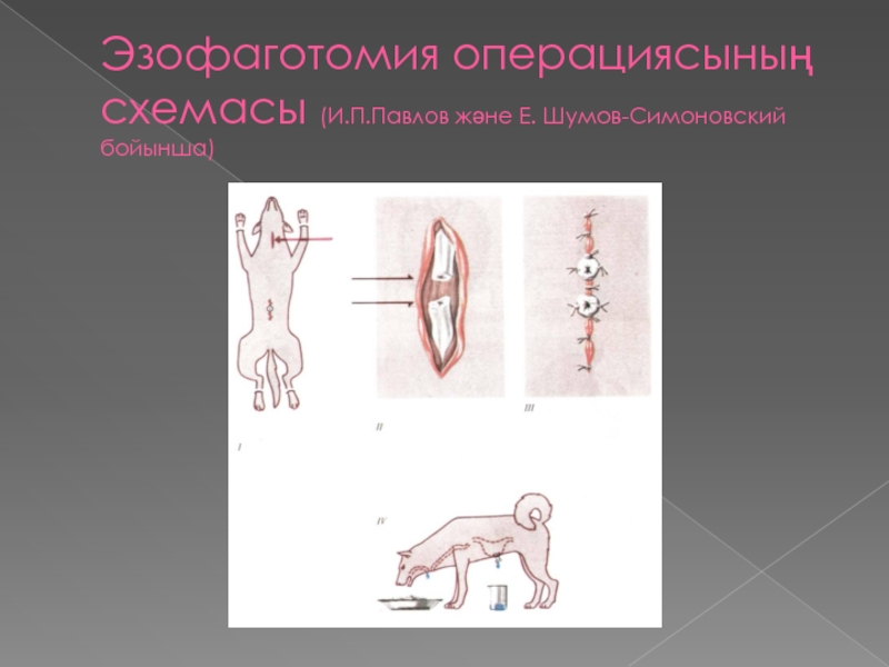 Слайд 9Эзофаготомия операциясының схемасы (И.П.Павлов және Е. Шумов-Симоновский бойынша)