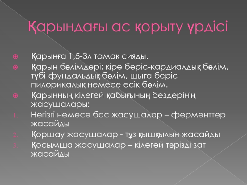 Слайд 12Қарындағы ас қорыту үрдісі