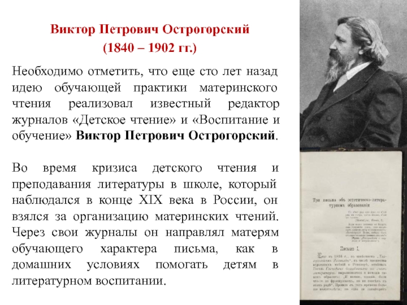 материнского чтения реализовал известный редактор журналов «Детское чтение» и «Воспитание