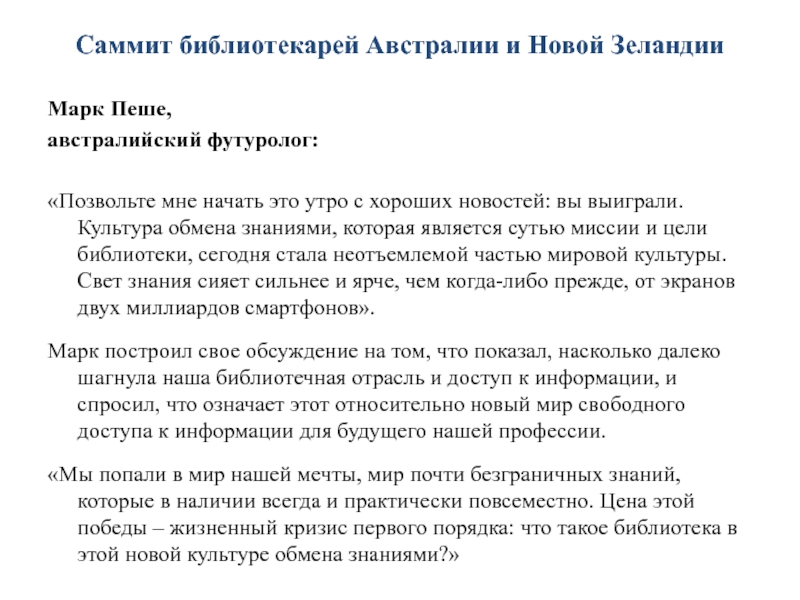 Кэти Манк. Как Президент Международной ассоциации школьных библиотек (ИАСЛ) я передаю вам привет от всех наших коллег.