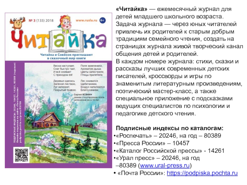 «Читайка» — ежемесячный журнал для детей младшего школьного возраста.