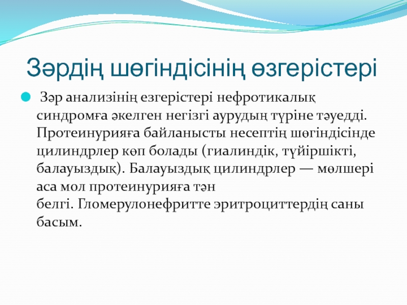 Зәр анализінің езгерістері нефротикалық синдромға әкелген негізгі аурудың