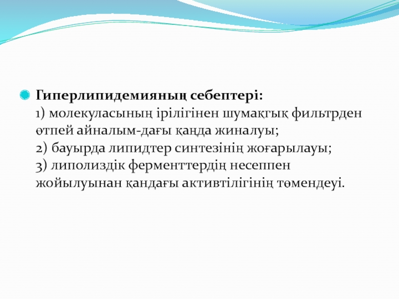 Слайд 17Гиперлипидемияның себептері: