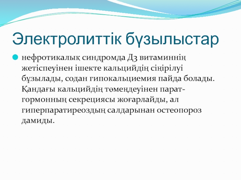 Слайд 19Электролиттік бүзылыстар