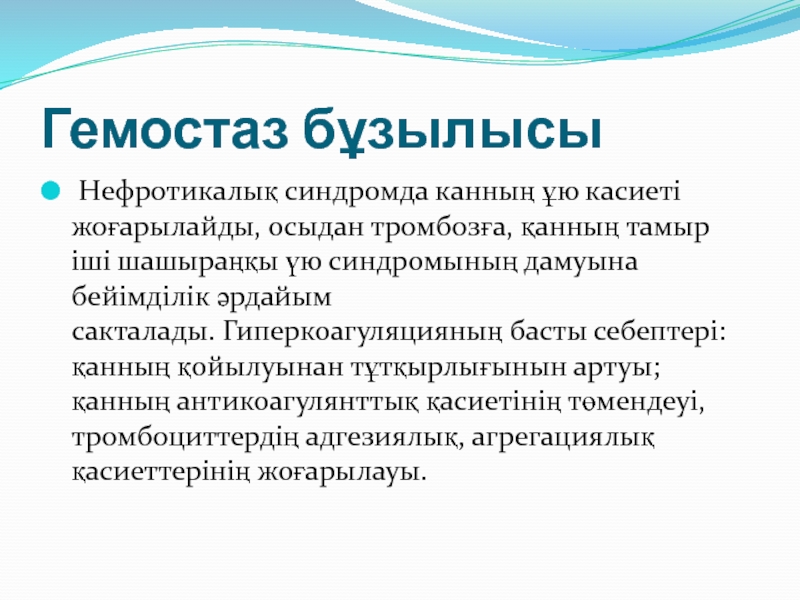 Слайд 18Гемостаз бұзылысы