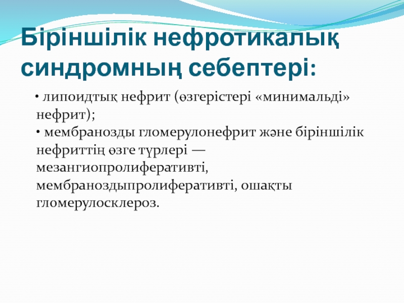 Слайд 5Біріншілік нефротикалық синдромның себептері: