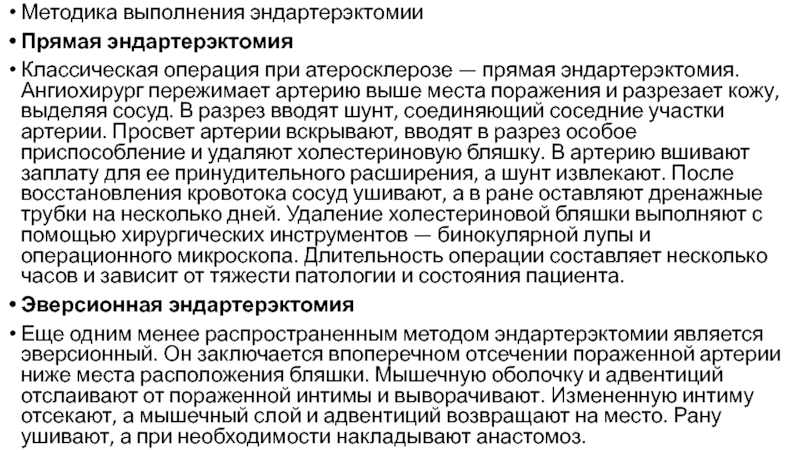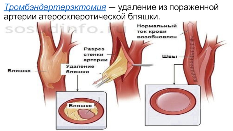 тока крови по сосуду, пораженномуатеросклерозом. Эндартерэктомия представляет собой операцию, предназначенную