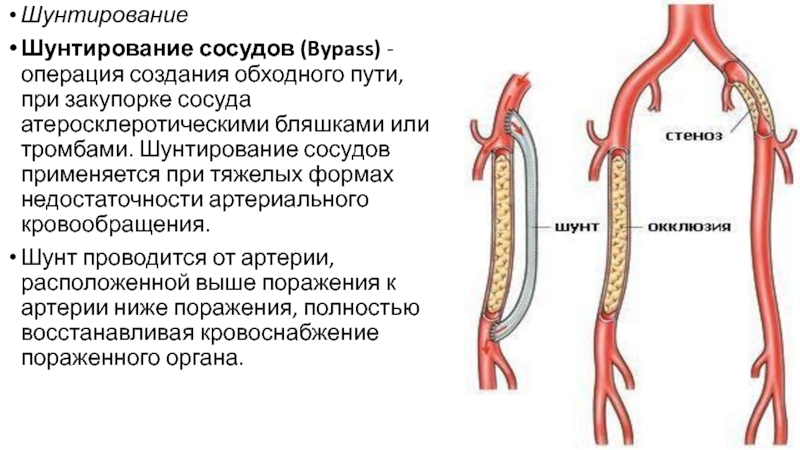 атеросклеротическими бляшками или тромбами. Шунтирование сосудов применяется при тяжелых формах