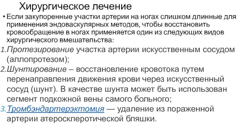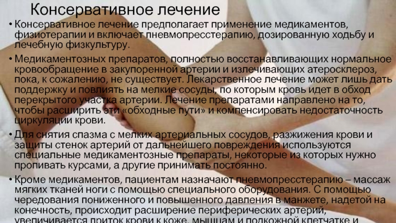 Слайд 8Лечение атеросклероза артерий нижних конечностей