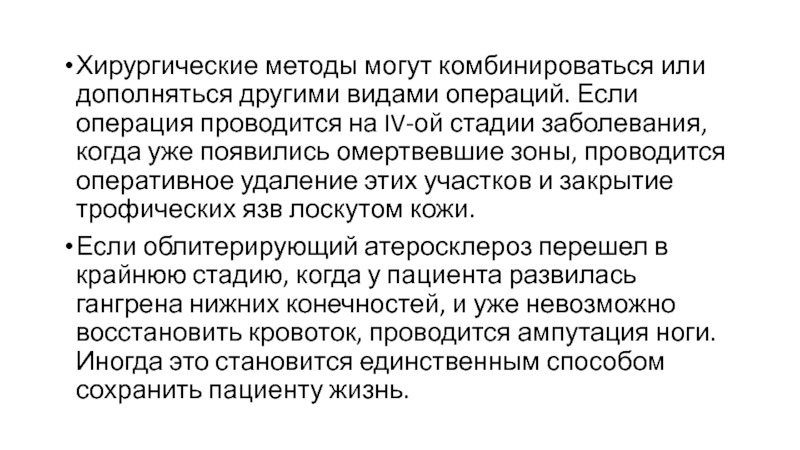 Слайд 21Хирургические методы могут комбинироваться или дополняться другими видами операций. Если