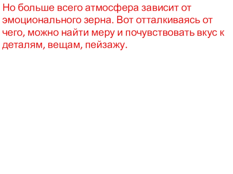 Слайд 18Но больше всего атмосфера зависит от эмоционального зерна. Вот отталкиваясь