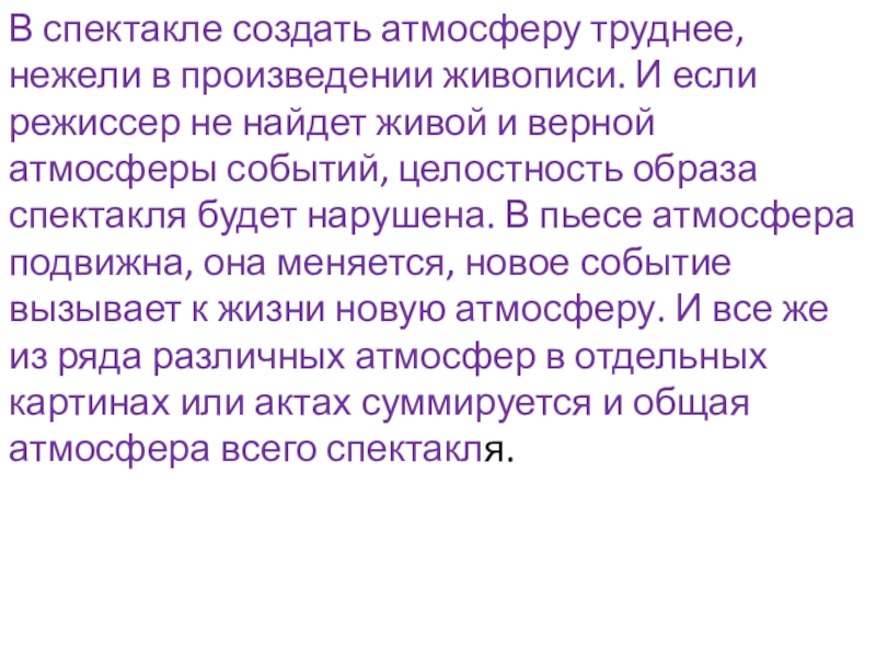 Слайд 8В спектакле создать атмосферу труднее, нежели в произведении живописи. И