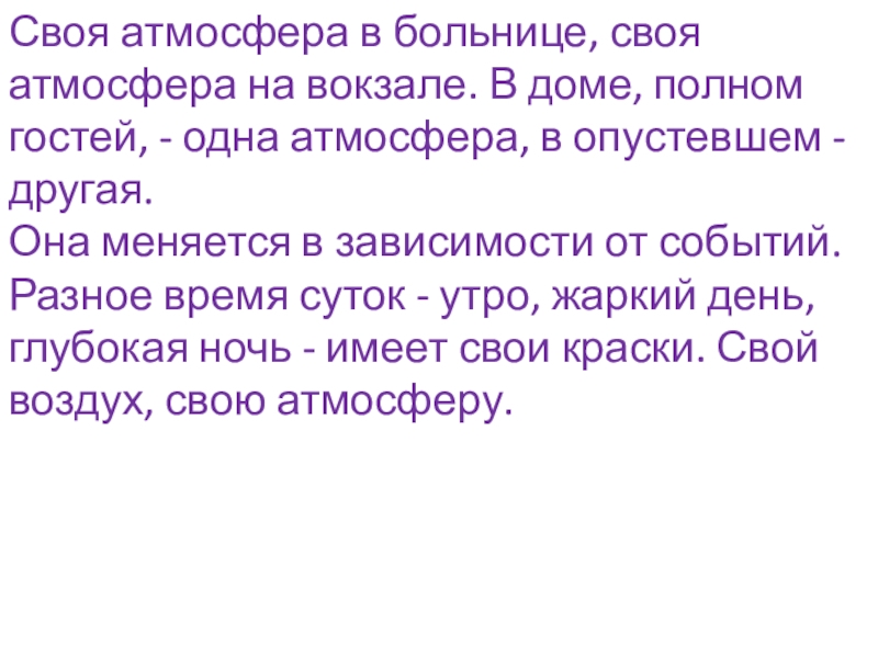Слайд 6Атмосфера не только порождается основными событиями- она является одновременно и