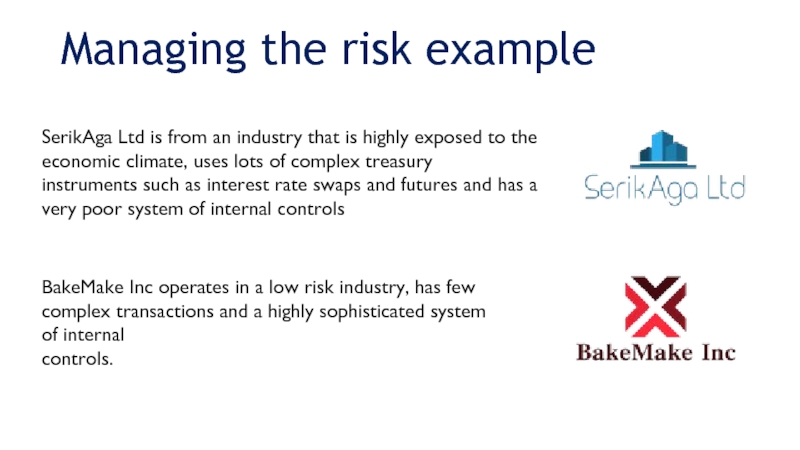 BakeMake Inc operates in a low risk industry, has few complex transactions and a highly sophisticated system of internal